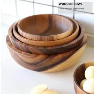 Exquisite handmade wooden bowl with beautiful wood grain, which is lightweight, heat-resistant and unbreakable for long time using.